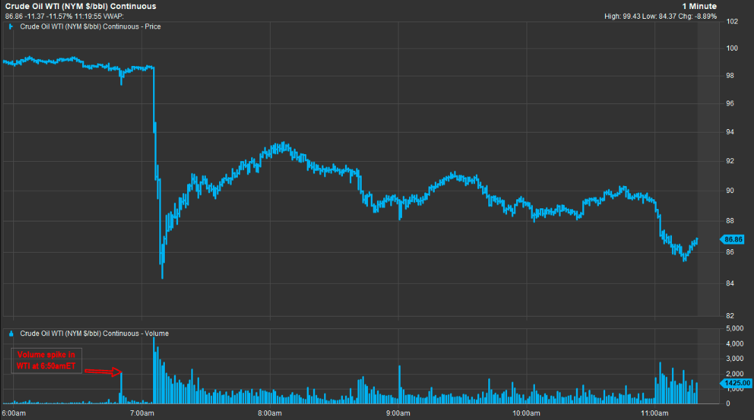 而就在此前一天(3月23日),美国总统特朗普曾通过社交平台Truth Social宣布了延后对伊军事打击的决定。但诡异的是,在这一政策突然转变前的约15分钟,期货市场和预测市场就率先出现了一波神秘的交易热潮。据道琼斯市场数据显示,当时不到两分钟内,价值超过7.6亿美元的期货合约易手。