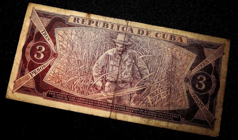 在古巴一张面额3比索的纸币上,印着一片甘蔗田以及挥刀砍蔗的格瓦拉。
