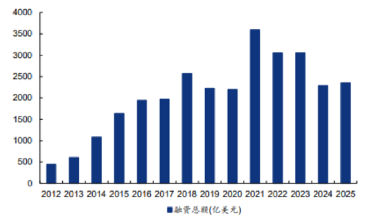 图:2012-2025年全球医疗健康融资总额